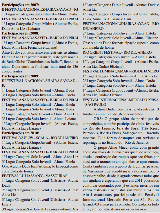 Apaixonada pela dança, Aline Mucci começou a escrever uma história em 1995 que hoje é sucesso. 15 anos após, hoje a professora e bailarina Aline Mucci colhe frutos daquilo que faz com amor e dedicação. Com formação baseada em cursos realizados em São Paulo, Rio de Janeiro, Belo Horizonte e importantes viagens ao Egito para aperfeiçoamentos, Aline ainda conta com uma bagagem extra em seu vasto currículo que são participações em novelas e programas de TV. A professora destaca as participações na novela “O Clone” que está sendo reprisada pela Globo no programa Vale A Pena Ver de Novo, e também, no programa humorístico Zorra Total.