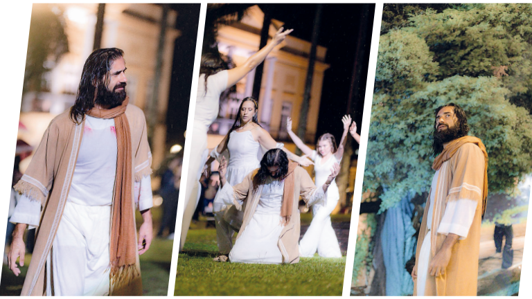 Plínio Lopes – A Paixão de Cristo evoluiu muito. Ela começou dentro da igreja católica, em uma única apresentação. Depois passou a ser em dois dias e, graças a Deus, ganhamos a praça, cenário para onde ela foi idealizada e projetada. Atualmente, recebemos um público de cinco mil pessoas em cada dia de apresentação, lotando a praça mais linda do Brasil. Essa evolução é física e notória. Agora, se eu for falar da evolução espiritual, é imensurável. E glória a Deus por isso. Me sinto muito privilegiado por poder contar essa história e ser transformado por ela.