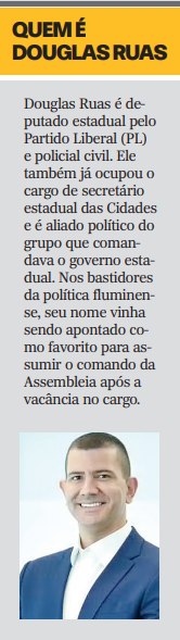 O deputado estadual Douglas Ruas (PL) foi eleito na última quinta-feira (26) presidente da Assembleia Legislativa do Estado do Rio de Janeiro (Alerj). A votação ocorreu em sessão extraordinária e foi marcada por questionamentos na Justiça e pelo boicote de parlamentares da oposição.