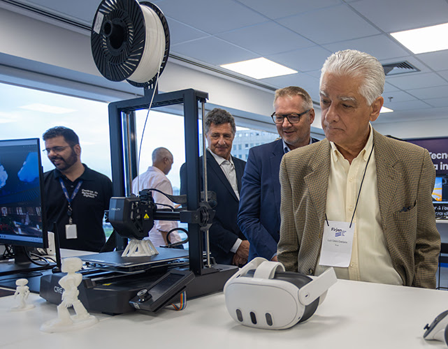 O grupo fez uma visita técnica no espaço, onde conheceram as salas de Cibersegurança, Desenvolvimento de Sistemas, Redes, entre outros locais como a sala de Inteligência Artificial, onde puderam conferir simulações de Realidade Mista e Aumentada na qual assumia o ponto de vista de um astronauta no espaço. Alunos da Firjan SENAI apresentaram inovações feitas na instituição, como um sistema que controla a vazão de água e um software de gestão de processos industriais.