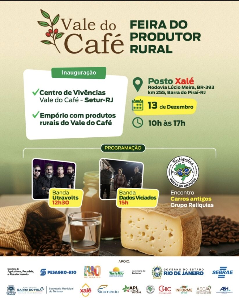A feira reunirá produtos típicos da região, como cachaças, queijos e cafés, além de artesanato local e atrações musicais. Além da nova loja de conveniência, já em funcionamento, o Posto Xalé abrigará o Empório de Produtos Rurais, com itens do Arranjo Produtivo Local (APL) do Vale do Café.